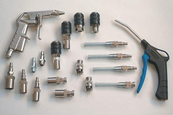 Pistole di soffiaggio e raccordi rapidi: accessori per aria compressa, anche in versione antinfortunistica e raccordi di giunzione rapidi standard e per grandi portate.